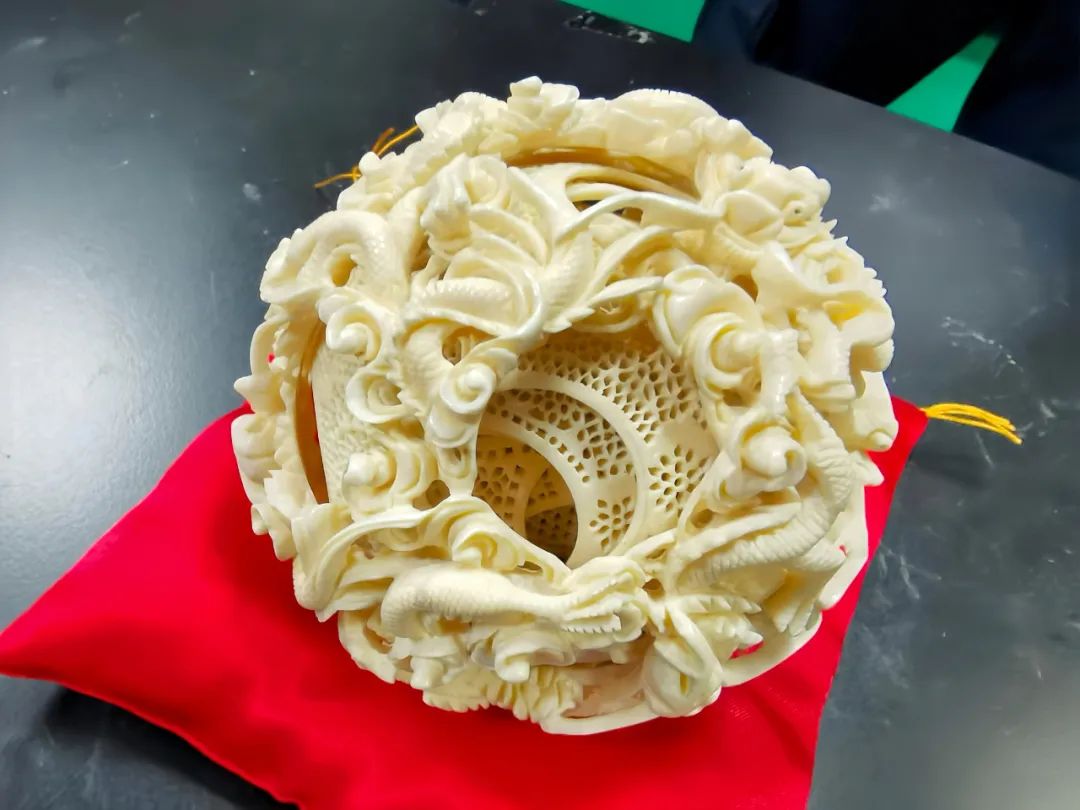 近日,广州海关在进境寄递渠道查获1件象牙雕刻工艺制品“鬼工球”,净重290克。