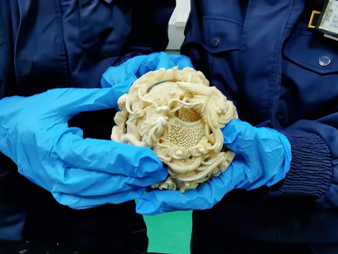 广州海关所属广州邮局海关关员在对进境邮件进行监管时,发现1件邮件机检图像异常。经进一步查验,海关关员发现邮件内为1件牙雕套球(又称“同心球”“鬼工球”),外观呈淡黄白色,表面具有明显的象牙特有纹理结构。经送技术机构鉴定,确认上述雕刻工艺制品为哺乳纲长鼻目象科非洲象象牙制品。非洲象属于《濒危野生动植物种国际贸易公约》(CITES)附录列明保护物种。